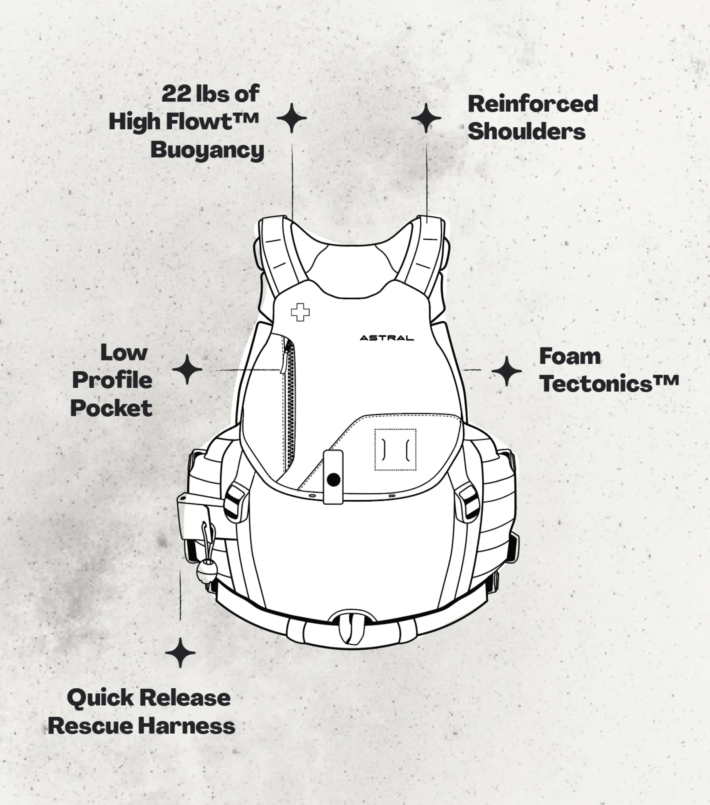 Whitewater athletes continue to progress the sport on larger volumes and higher flows. With 22 lbs of flotation sculpted into Astral’s industry leading FoamTectonics™️ architecture, the Indus™️ is the world’s first freestyle-inspired high float life jacket. That’s a 33% increase in flotation over the legendary GreenJacket™️ for those drawn to big water.