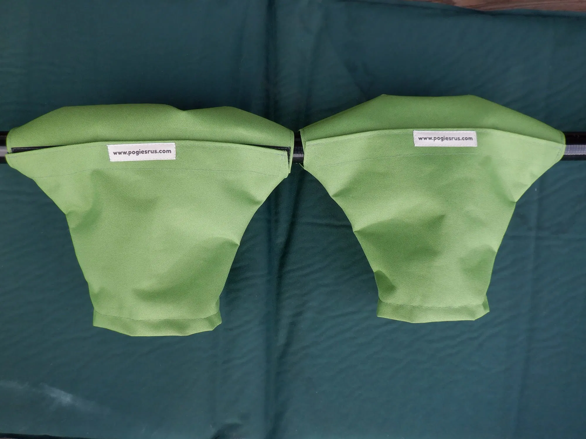 Ordinary neoprene pogies or fleece lined pogies retain a significant amount of water which makes them heavy and transfers heat away from your hands .